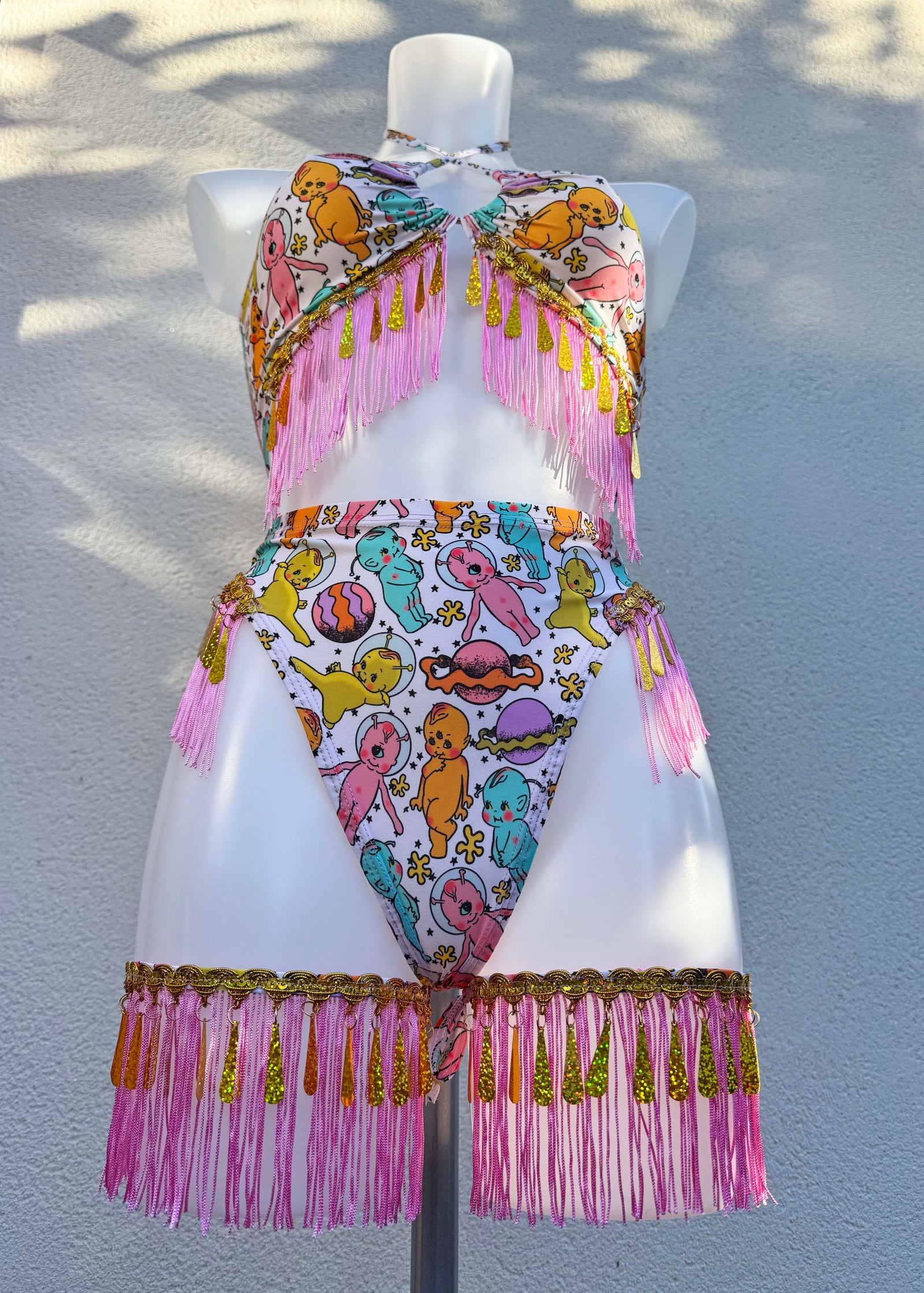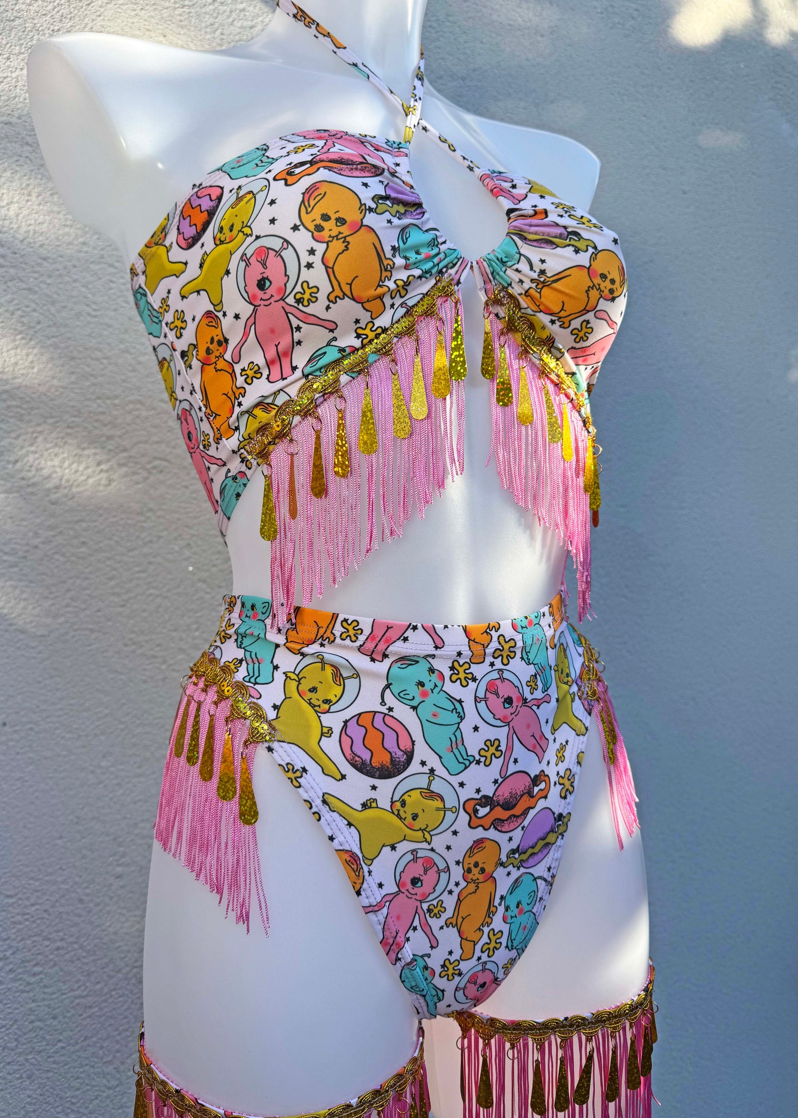You can build your dream outfit from our custom section. Add the items you’d like to the basket and let us know in the checkout notes what fabric and trims you’d like. All of your print options are listed on each product. Ordering a custom outfit doesn’t affect your delivery date listed at checkout - I already can’t wait to see what you create!