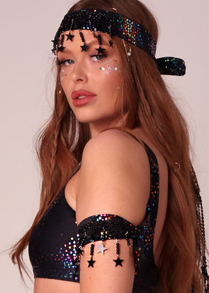 This listing is for two Black Celestial star arm cuffs.