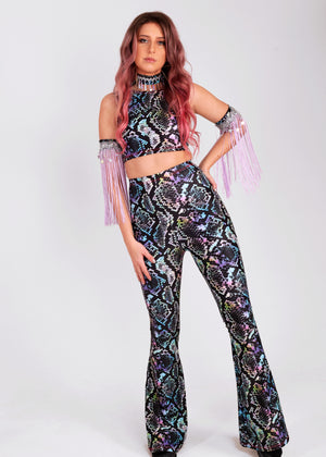 Snakeskin High Neck Crop and Flares