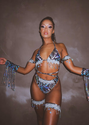 Accessories worn in this look: Snakeskin Gypsy Wrist Cuffs with Silver Sequin Fringe, Snakeskin Star Sequin Leg Cuffs and Snakeskin Star Sequin Arm Cuffs.