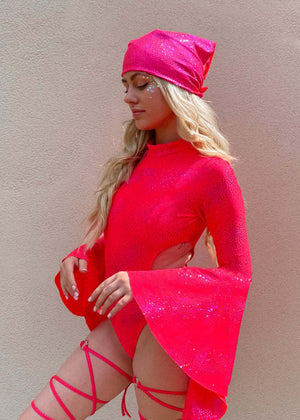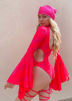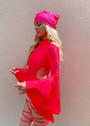 Strawberry Celestial Bell Sleeved Cut Out Bodysuit